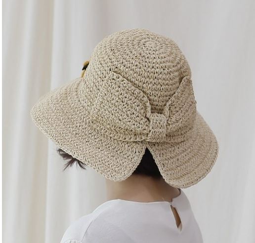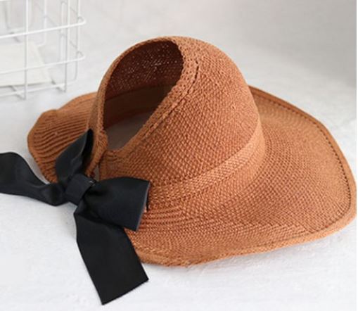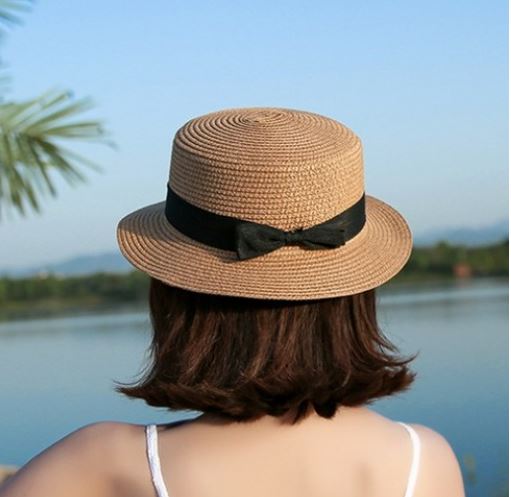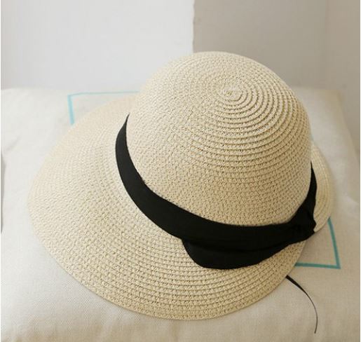 yok 느리게걷기 블랙리본 비치 모자 여성모자 자외선차단 여름모자 짚모자