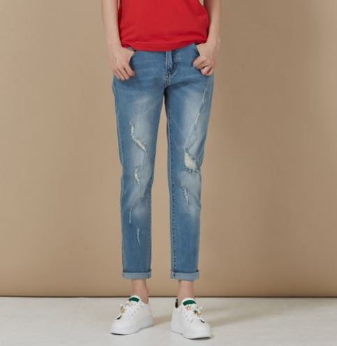 진마니아 여성용 완전 편한 빛바랜 연청 빈티지 헤짐 스판 배기팬츠 WBA-023