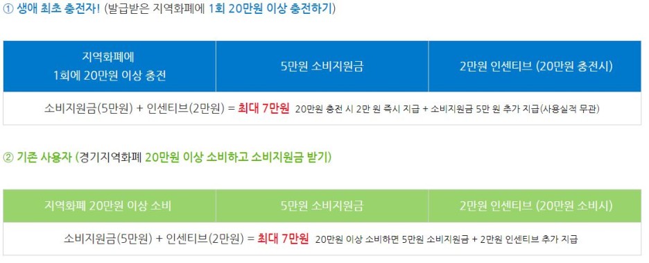 기지역화폐 20만원 이상 사용자(기존 사용자) 또는 생애 최초 20만원 이상 충전자(지류형 지역화폐제외)
