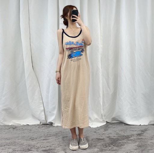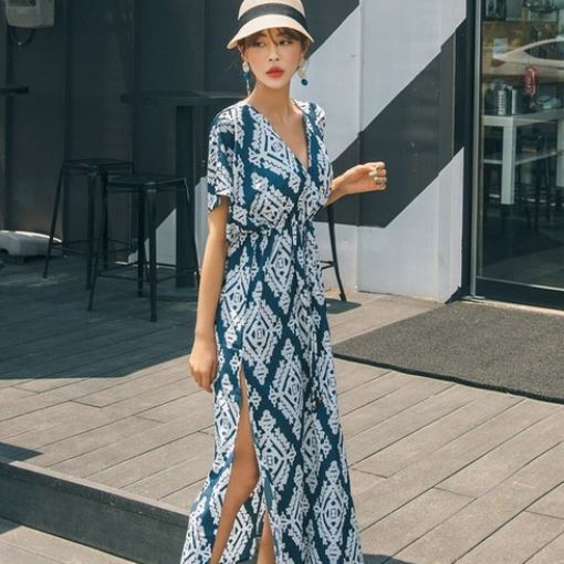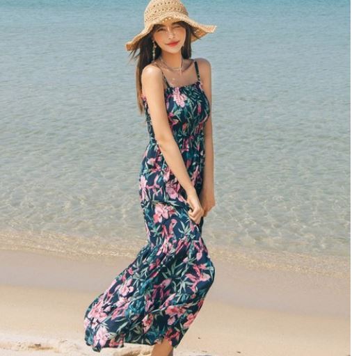 VANANA2 꾸안꾸 서퍼 프린팅 밴딩 비치 롱 나시원피스