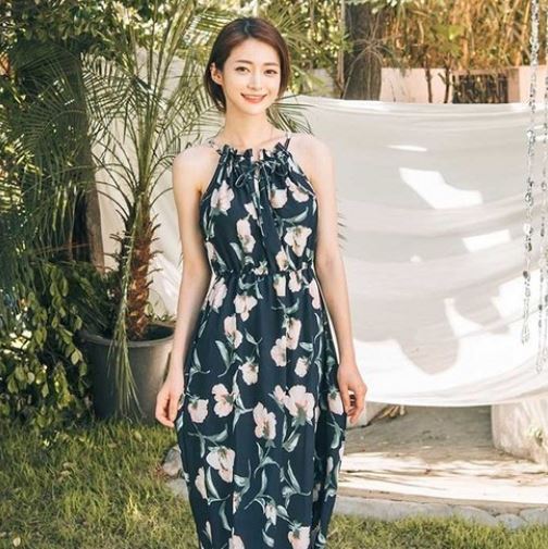 헤링본 홀터넥 롱 여름 비치원피스 쉬폰 플라워