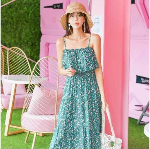 헤링본 여름 비치원피스 롱 나시 민소매 플라워