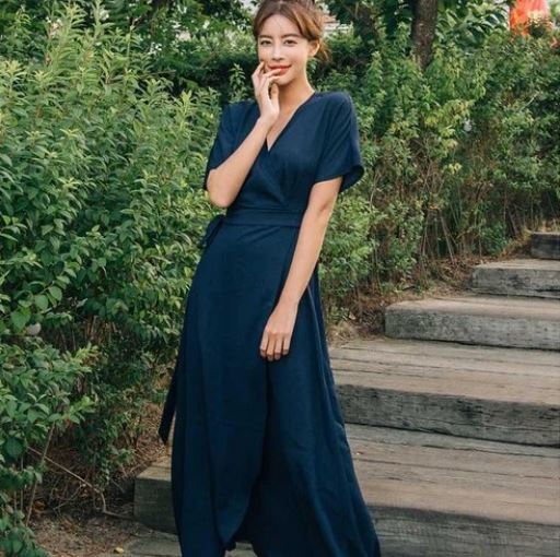 대박난박양 셀레네 쉬폰 롱 반팔 원피스