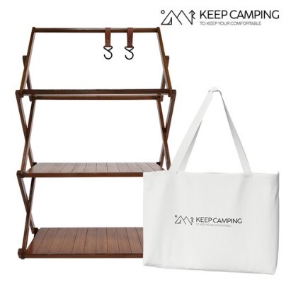 KEEP 캠핑 원목 접이식 와이드 우드 행어 쉘프 선반 3단4단 수납 보관