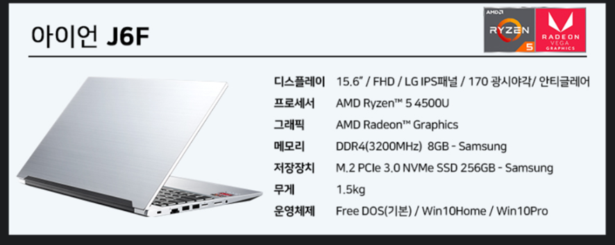 50만원대 노트북 추천합니다.(주연테크 아이언 J6F)