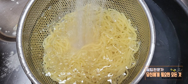④ 삶은 면을 뜨거운 물에
