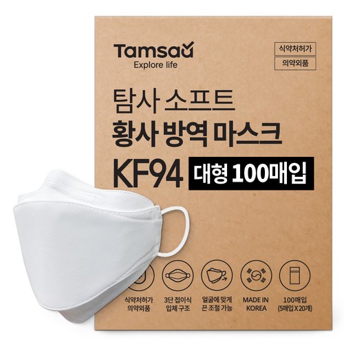 탐사 소프트 황사방역마스크 KF94 대형 슬림핏 지퍼백, 5개입, 20개